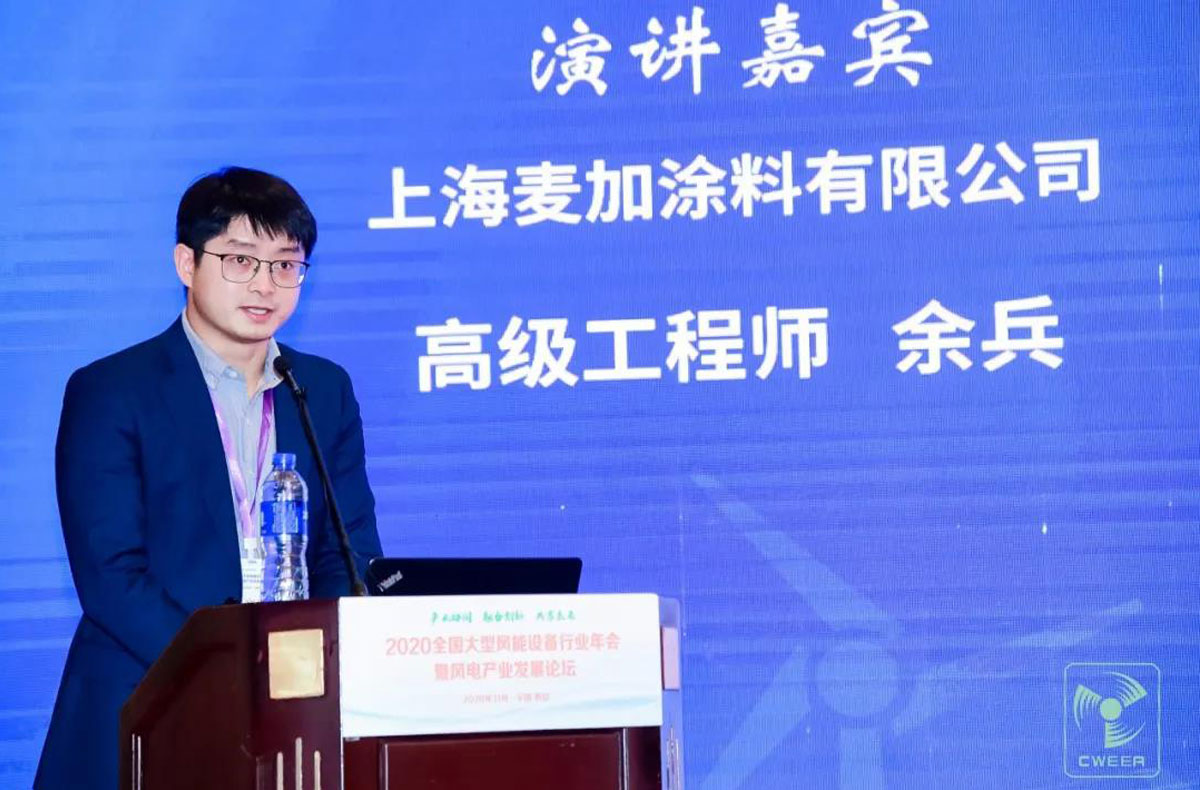1126日,麥加芯彩技術研發部高級工程師余兵先生,于風電產業發展論壇發表演講,題目為:海上風電前緣防護新方案;獲得在場嘉賓的熱烈關注。