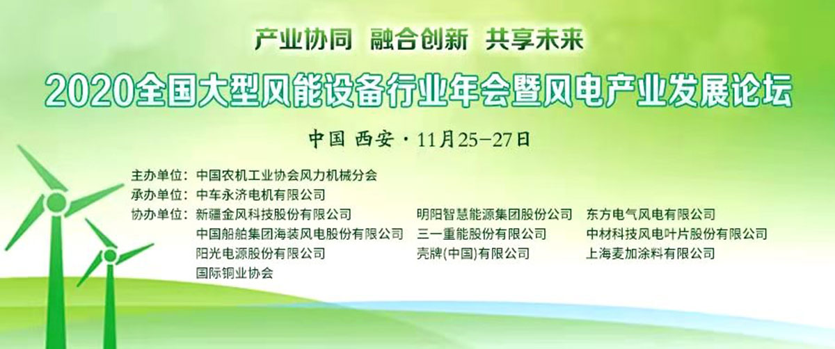 本次大會由中國農機工業協會風力機械分會主辦,中車永濟電機有限公司承辦,新疆金風科技股份有限公司、明陽智慧能源集團股份公司、東方電氣風電有限公司、中國船舶集團海裝風電股份有限公司、三一重能股份有限公司、中材科技風電葉片股份有限公司、陽光電源股份有限公司、殼牌( 中國) 有限公司、麥加芯彩新材料科技(上海)股份有限公司、國際銅業協會協辦。